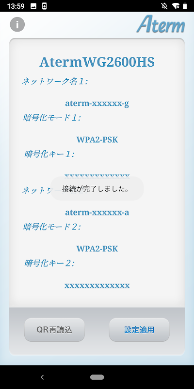 ・If you cannot recognize the QR code or download the application, please manually configure the Wi-Fi settings from your smartphone or tablet. Please see the Aterm manual for detailed settings.