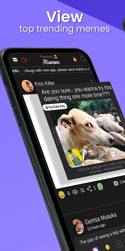 - Get notifications whenever someone likes your meme, follows you, comments, downloads your meme, etc.