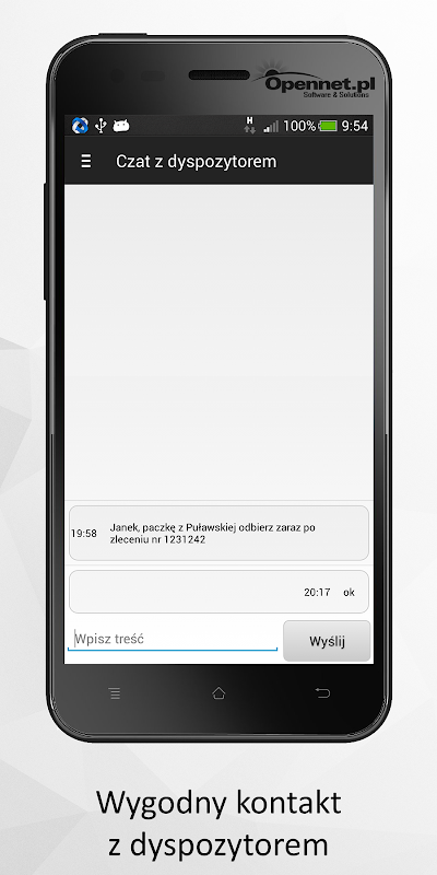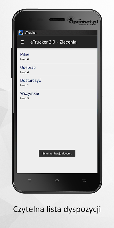 aTrucker a tool destined to couriers who collecting and delivering packages are on the phone screen synchronized current list of orders from the company server. Courier can change the status of your shipment, as well as contact with the dispatcher using the chat. If you have problems reaching the indicated address, the courier can start navigation or make a phone call with the client. Trucker entire system, including the presented application for the Android system is fully adapted to the needs of a particular courier or shipping, meeting all customer requirements. For more information visit www.OpenNet.pl