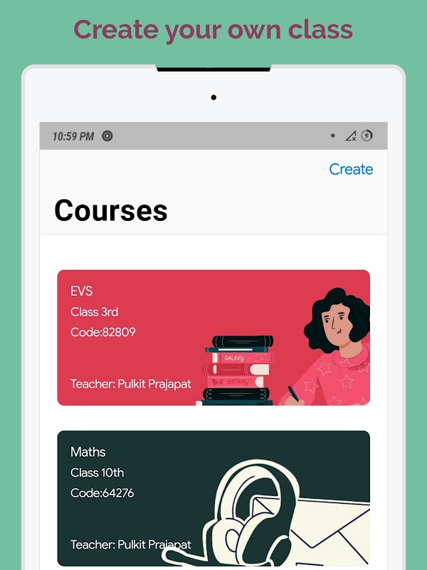 In the app you can create your class and then students can join the class,