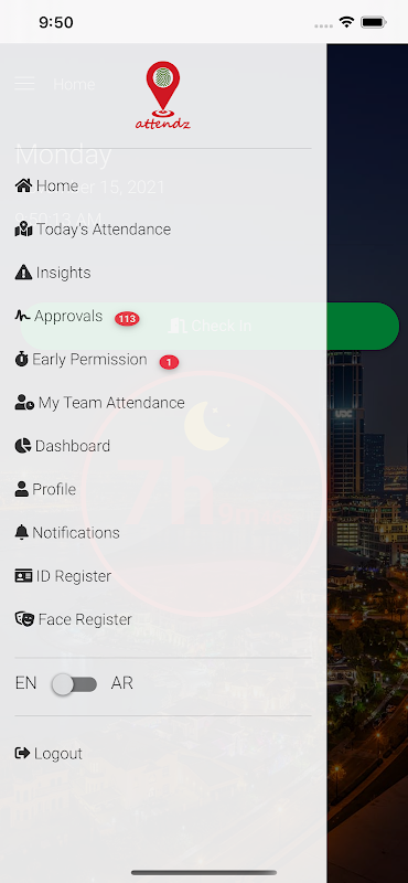 Approvals are also available through the app, by which the direct manager can approve or reject an attendance. These approvals are determined by the system based on the Shift-Start time of each employee, working hours, missed check-out, etc...