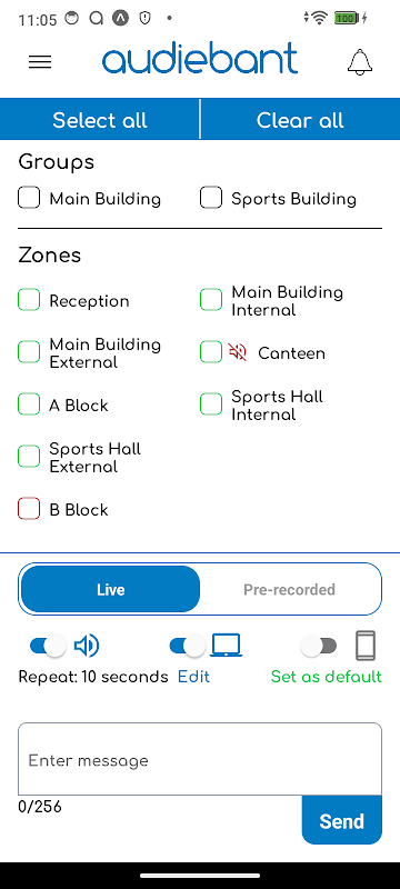The Audiebant - Urgent Announcements Application allows for urgent announcements to be broadcast across your sites, and/or individual zones.