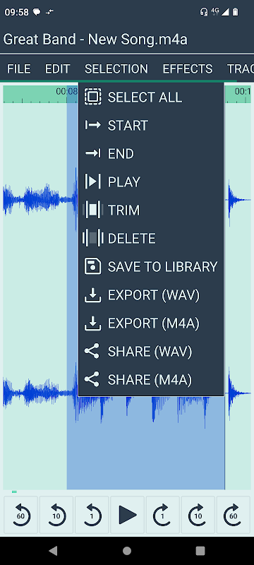 • share audio (WAV / M4A)