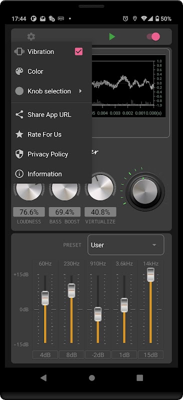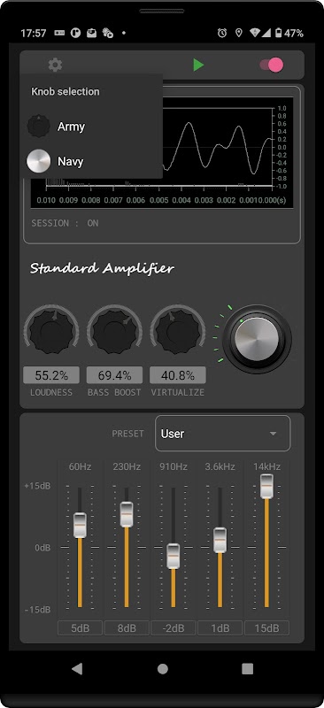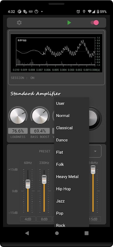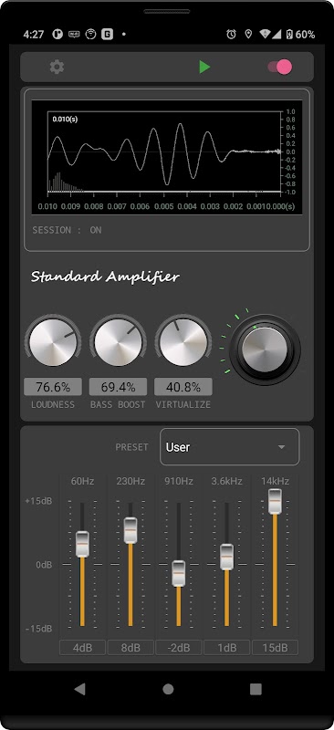 -Standard AMP version of Audio Equalizer that works in the background for listening to music, movies, streaming, etc.