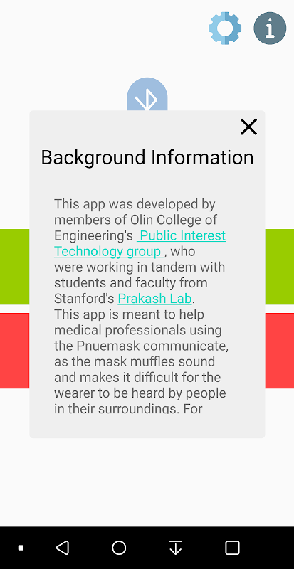 This app relays the audio from a bluetooth device microphone to the output of a connected speaker. The purpose of this app is to provide doctors with a means of communicating through PPE, using devices that may already be available to them.