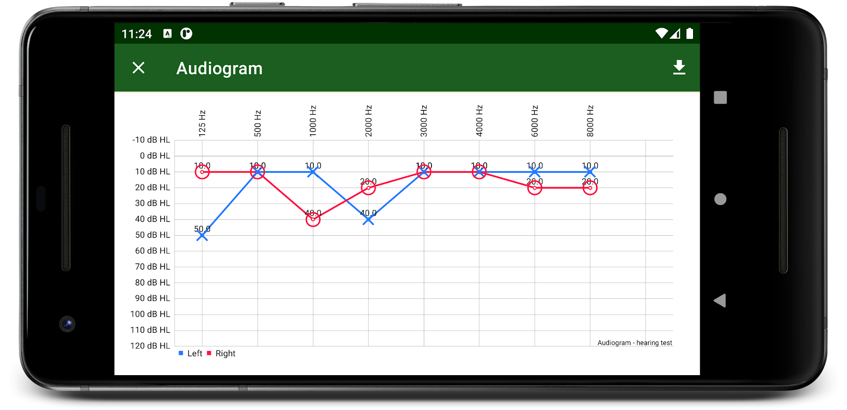 The application enables basic hearing tests - tonal audiometry (Audiogram).