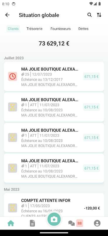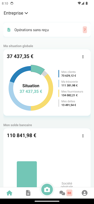 Thanks to it you can visualize your key figures on a dashboard, know in detail your customer outstandings and supplier debts.