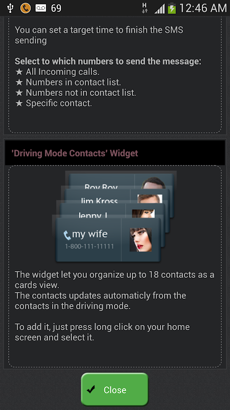 Get a Bonus: amazing graphical widget so you can navigate between your favored contacts like you are playing cards.