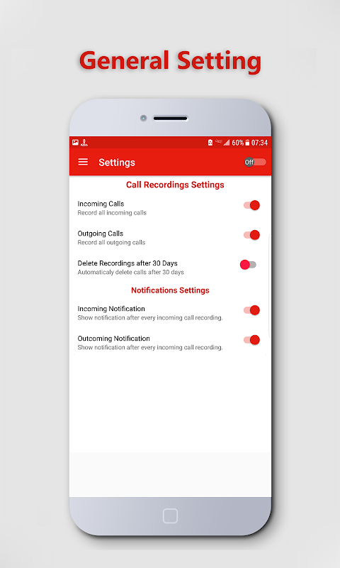 - Notification on device on start of call recording with blinking light (if your device supports it).