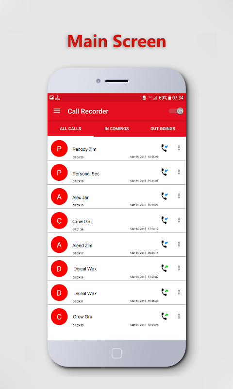 - Organize your call records. You can see calls as all calls records, only incoming, only outgoing, date and time easily.