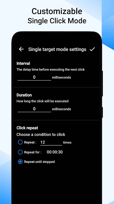 7. Repeat and Looping: You can set this auto keyboard presser app to repeat the clicking sequence a certain number of times or loop indefinitely until manually stopped. This feature is useful for executing a series of clicks repeatedly without the need for manual intervention.