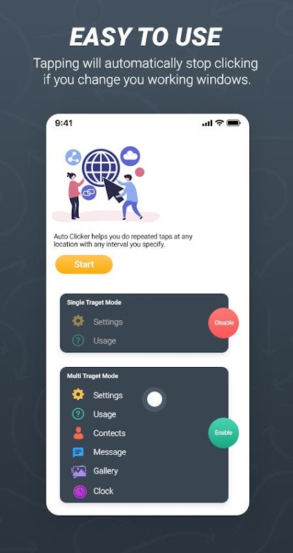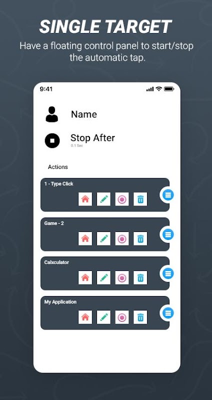 This auto clicker includes clicks, curve swipes and pinch gestures.