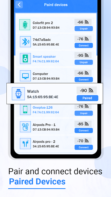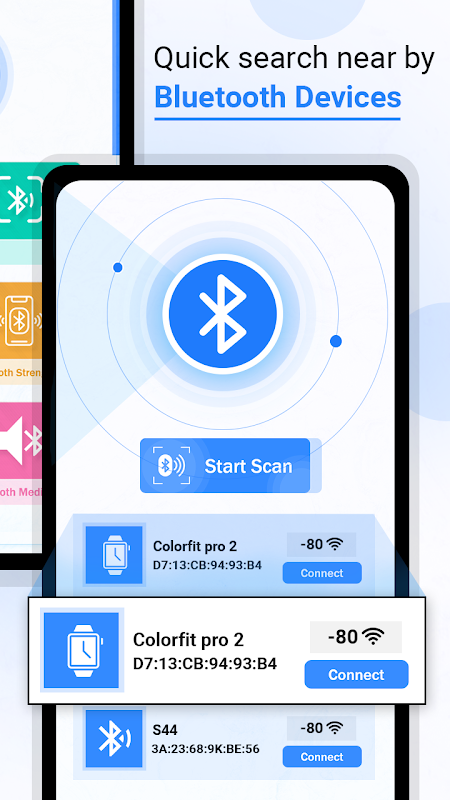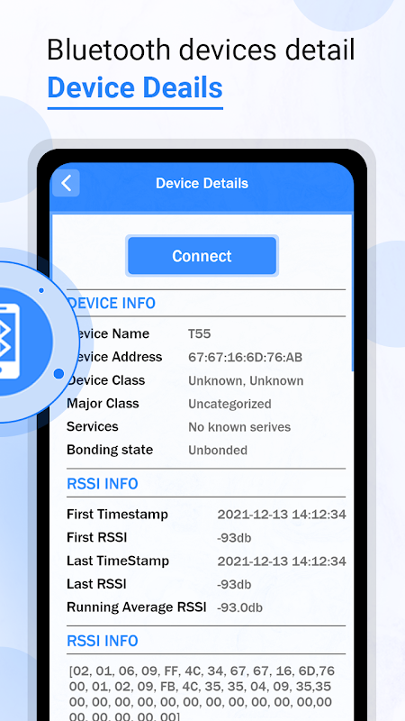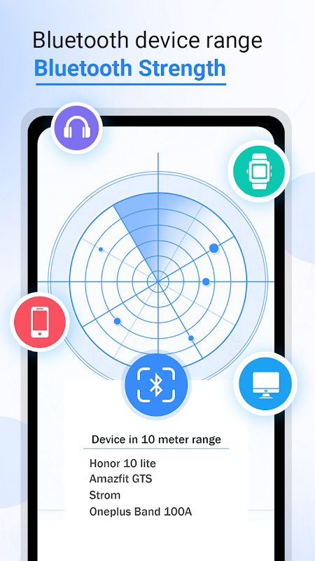 ★ Bluetooth Strength : It will scanning nearby bluetooth devices and display the strength with their name, distance, address and RSSI instantly after scanning