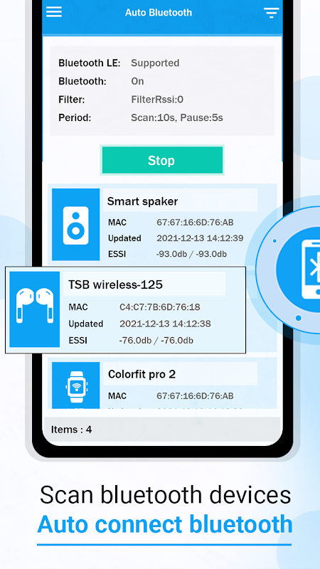 ➠ This Auto Connect Bluetooth Devicesapplication works for smart watches, Bluetooth speakers, Bluetooth headset, Bluetooth car kits,
