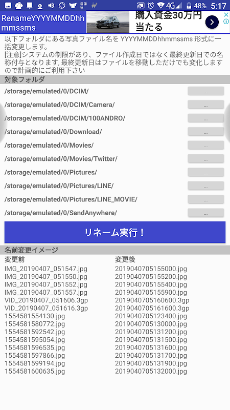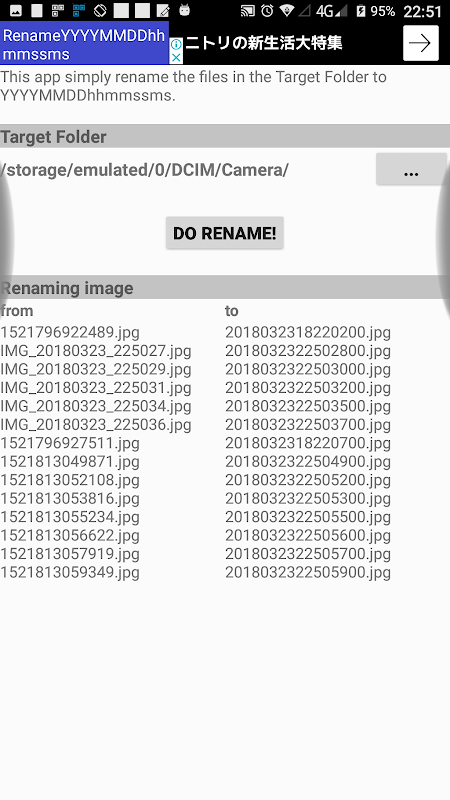 The photo file created in the specified folder is automatically converted to the last modified time name of the file as shown below.