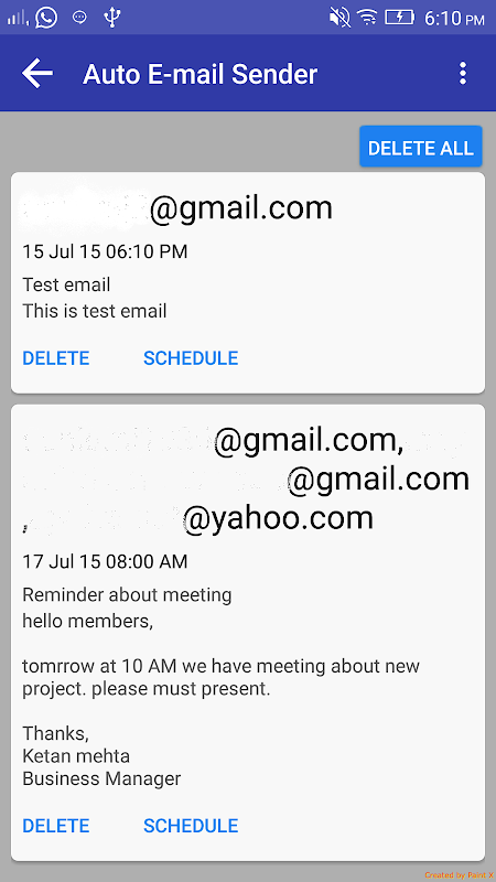 Auto Email Sender app is an enormously powerful app with very user friendly interface, developed by DRC INFOTECH. It enables you to send Email automatically to the preferred recipients at a scheduled time via your internet provider (Wi-Fi-mobile)
