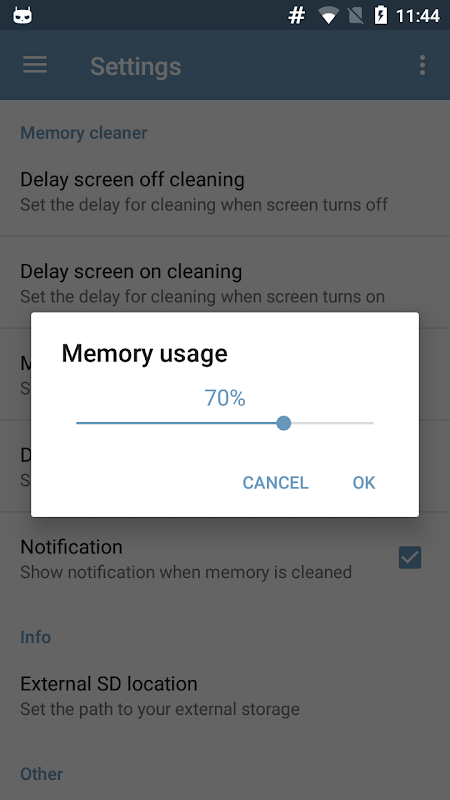 Auto Memory Cleaner runs in background and according to your settings cleans your memory in purpose of better performance and less lags. Your running processes and their tasks are restarted and not killed and this is much more effective way than using any other task killer or memory cleaner. This method prevents the memory overflow and also boosts speed of your device. This application is running in the background and does all the work for you. Battery consumption of this application is minimal. You can set whether you want to clean memory in specific time or every time when screen is turned on/off or when your memory usage is higher than specific value. You can also choose which processes you want to be cleaned and which not.