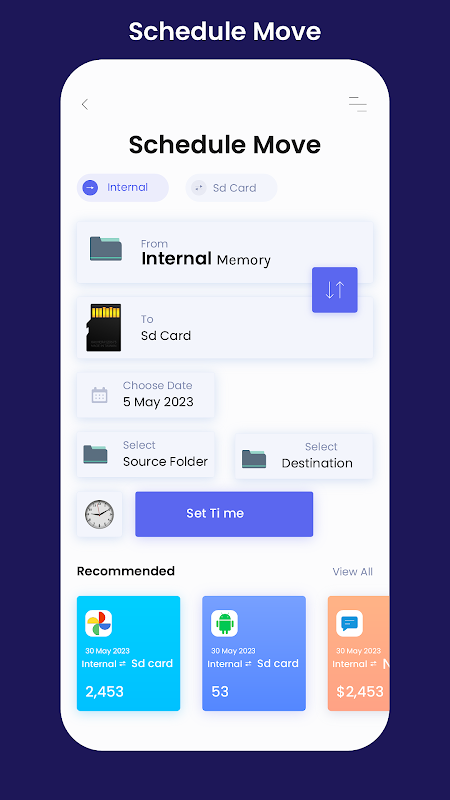 Effortlessly select specific files or entire directories with just a few taps. Our intuitive interface allows you to conveniently organize and backup your files based on file extensions, making the process faster and more efficient. This app will help users to maintain memory space in their mobile. Media files capture maximum space in a mobile, with this app you can auto transfer media files to sd card to save phone's memory. # Feature For Users Without SD Card