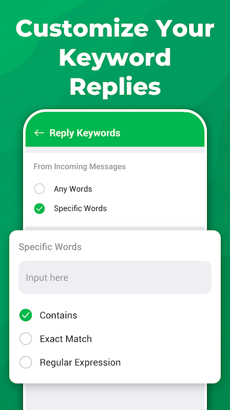 Keyword Rules: Trigger specific messages when certain words appear in incoming texts.