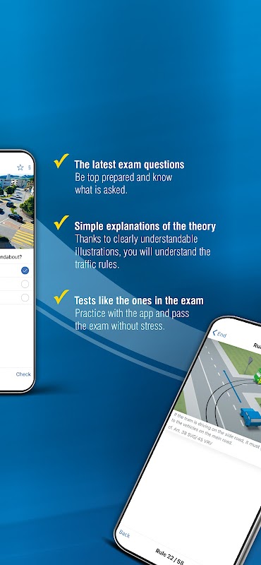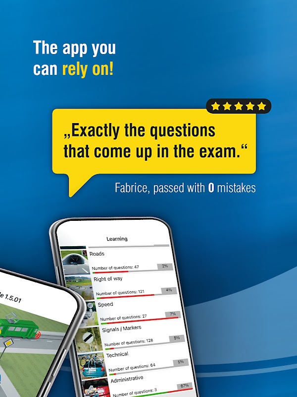 All the important traffic rules, theory questions - just like on the exam - plus over 100 training questions that have been worked out with driving schools - so nobody really has to be afraid of the exam!
