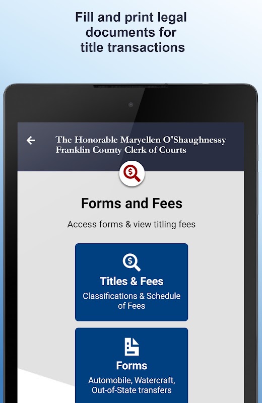 Franklin County Clerk of Courts’ Auto Title NOW! – Ohio’s first one-stop mobile app for motor vehicle titling. All the benefits of the Clerk of Courts’ Auto Title Division in the palm of your hand. Created for all, making proof you own it easier than ever.