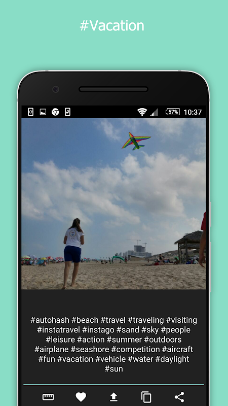 Our algorithm recognizes the objects in your photo and then offers you the most relevant hashtags. You no longer need to copy passed boring hashtags list that doesn't match your photo - AutoHash will get you the most suitable hashtags for each and every photo.