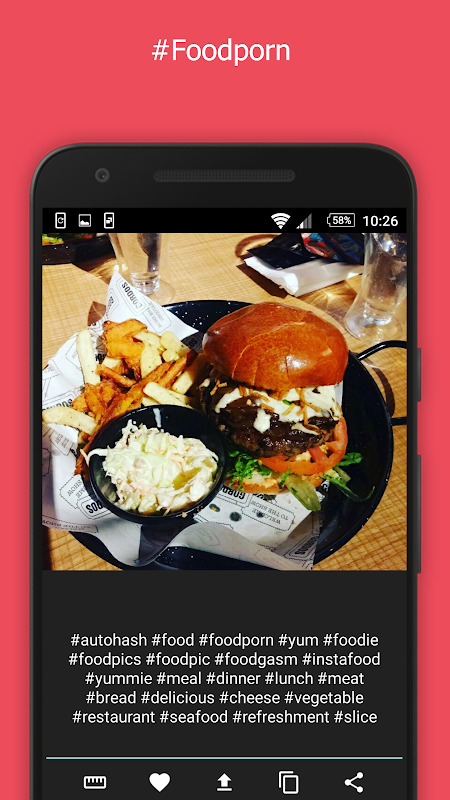 2. Favorite hashtags - We understand that you might have your own favorite hashtags and we respect it :) AutoHash lets you save your favorite hashtags (Just long press the heart button) and then add them in one click.