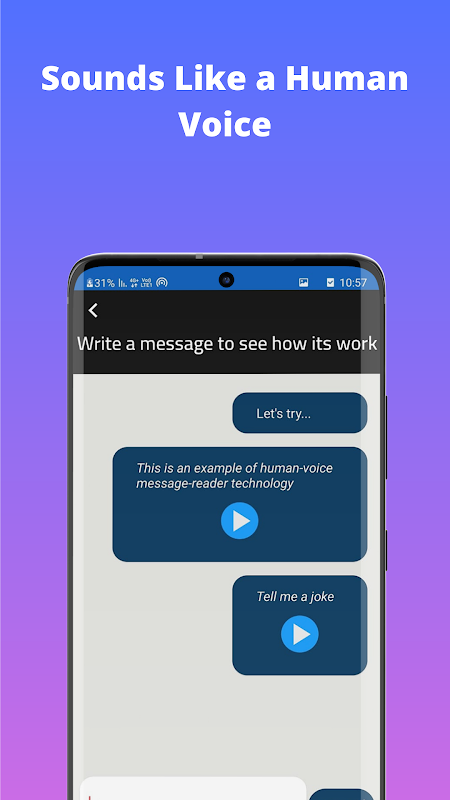 The only app that will allow you to hear your incoming messages while driving or doing a sporting activity, in a human-natural voice and will help you avoid distractions.