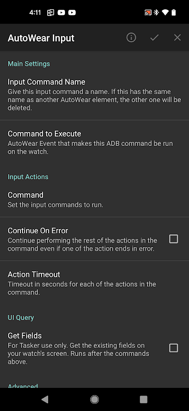 AutoWear uses your watch's Accessibility Service to allow you to simulate taps and other UI interactions on it from Tasker! Important Note: the AutoWear accessibility service is used JUST for automation purposes and in no way collects or shares your data.