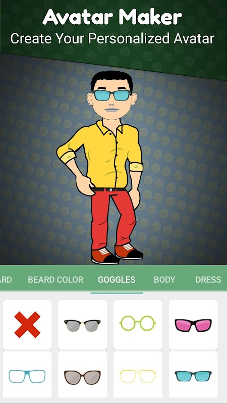 Create fun cartoon avatar of yourself and your friends with avatar maker pro application. Tons of customization features of cartoon avatar maker allows you to nail down your appearance. Change the look of your personal avatar's hair, facial hair ,eye color, eyebrow, beard, nose, ear, and even the clothes that show up when you send your moji,cartoon avatar to your friends.Once you created a cartoon avatar of yourself or friends, you can share it via Whatsapp,Facebook Messenger, or any other messenger you choose.