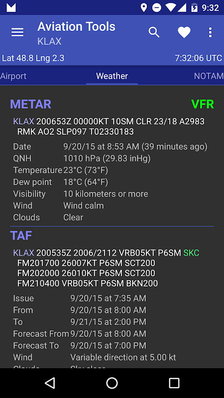 Get instant access to useful informations : METARs, TAFs, NOTAMs, AFD ...