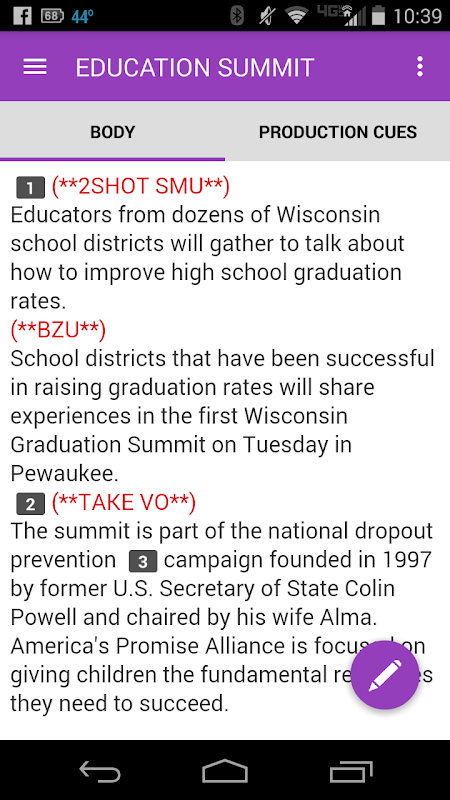 • Stories include normal text, presenter text, close captioned text, and production cues
