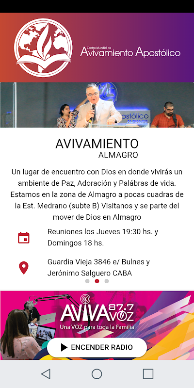 The App of the Apostolic Revival World Center where you can listen to FM AVIVAVOZ 87.7
