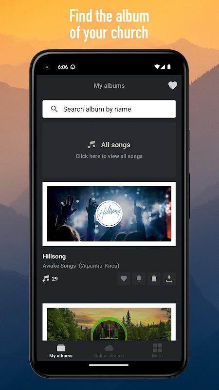 You can browse songs and albums online, or download an album to use it without internet access. You can use Awake Songs anywhere: at church, at home, in the camp, at the training, on the trip.