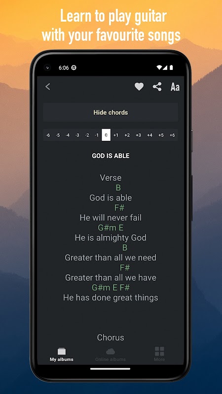 Awake Songs is not just a collection of Christian songs, it is primarily a convenient tool developed for churches, organizations, worship groups, for you to create your own albums, add songs, chords and share those with people. Your albums will be available to anyone who has Awake Songs. People can subscribe to albums to be notified when you add, change or delete songs. Thus, users will always have the latest albums.