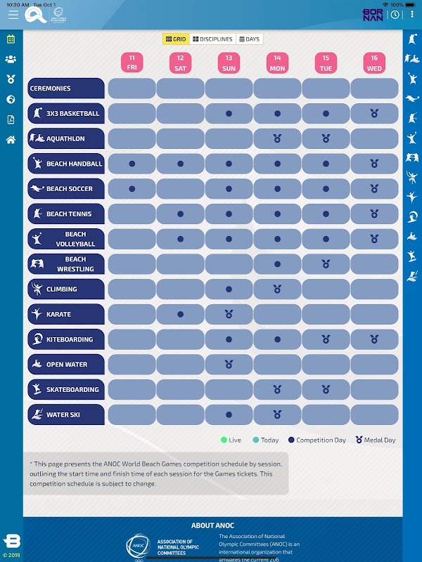 - To consult the schedule of the competitions.