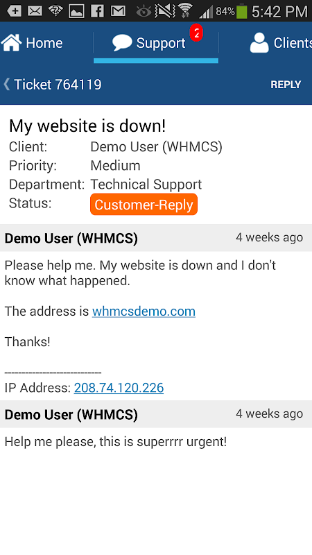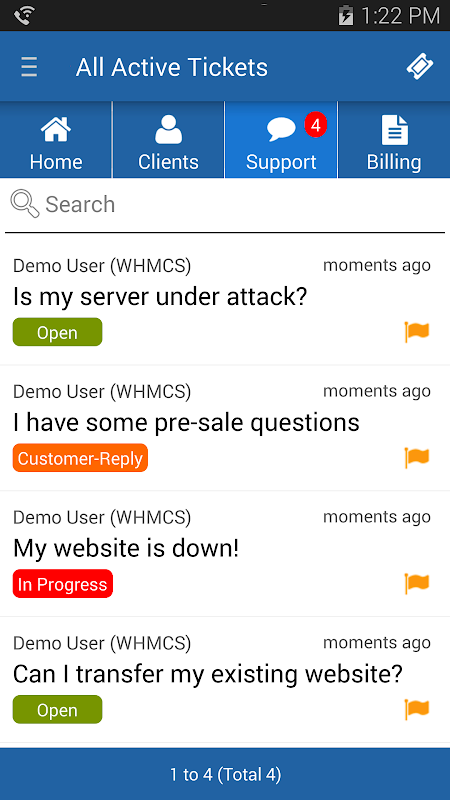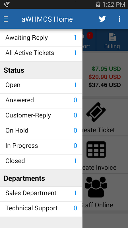 The Android App for WHMCS simplifies managing your business while on the move. Designed for WHMCS administrators and fully integrated with the online version of WHMCS, aWHMCS lets you stay in control even when you're away from your desk with Support Ticket Management, Order Processing and Billing functionality.