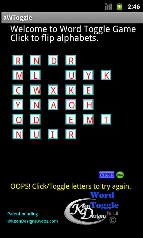 This is a dynamic words search game to discover some famous quotes. These great quotes are arranged in rows of alphabet cubes. A player has to toggle face alphabets of these cubes to discover the wisdom in these quotes. A maximum of 10 helping hints indicating correct position number of face alphabets is available for the less challenging minds. Try these highly interactive puzzles in this introductory edition. Company Info:www.keendesigns.webs.com