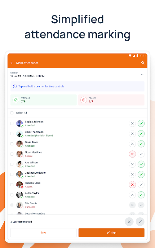 - Capture a signature as part of attendance marking, allows Trainers to sign while marking attendance