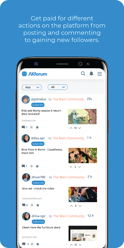 AXforum - is a free discussion-based and news aggregation app where users can freely share information and engage with one another's posts and content, which can be published in the form of text, links, images, videos, discussion threads, forums, and more. Through the innovative participatory model of AXforum, users can also generate rewards for being a part of the community, getting paid for a wide variety of actions on the platform from posting and commenting to gaining new followers. You can transact with this cost efficient, secure, simple multi-functional application by registering to create your AXIA Wallet or if you already have an AXIA Wallet simply login and it will be immediately integrated into your AXforum profile. You can sync AXforum across all your devices whether they be a phone, computer or tablet. This allows you to use multiple devices at the same time. Security is of the highest priority,therefore, AXforum supports end-to-end encryption for all users.