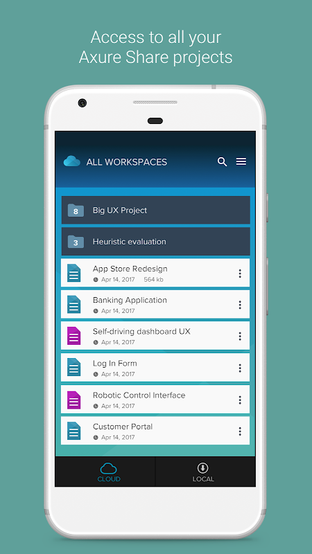 - Access your Axure Cloud projects on any mobile device running Android 4.4 or higher