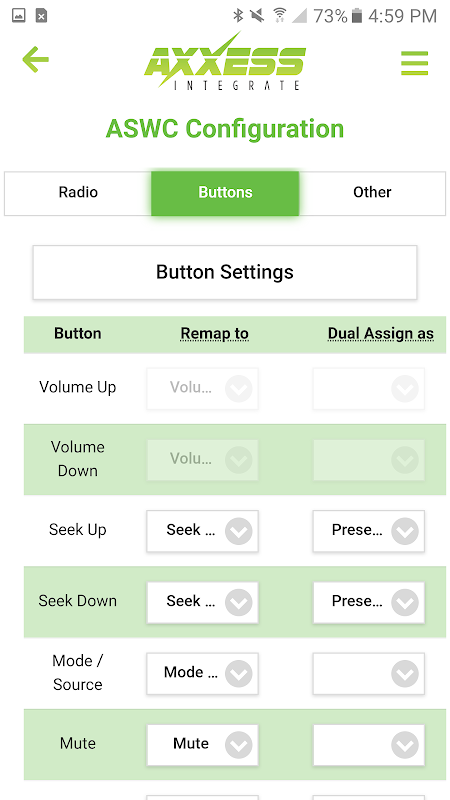 Customize your Axxess steering wheel control interface (ASWC-1) with this app. Map the steering wheel control buttons any way you'd like.