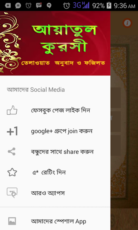 আয়াতুল কুরসী – Ayatul kursi is very important dua for every muslim . Should be Continue dua and quran telawath if who want increase rizik , wealth and protect from shoytan. And also maintain halal haram and foroz it is mentatory for every muslim . however Ayatul Kursi is an Important Ayat of Surah Bakarah of Al-Quran. Prophet Hazrat Muhammad SM (PUBH) narrated the importance of Ayatul kursi in various segments/ situation of his life. And also Hadith; its narrated that, Ayatul Kursi can save your life in different situation . So we make This android app explanation and fozilot of ayatul kursi .