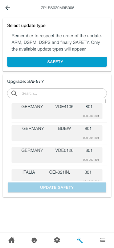 E' inoltre possibile aggiornare il firmware degli inverter Zucchetti (con seriale ZM2, ZP1 e ZP2) e aggiornarne i file di configurazione relativi al paese di installazione dell’inverter.