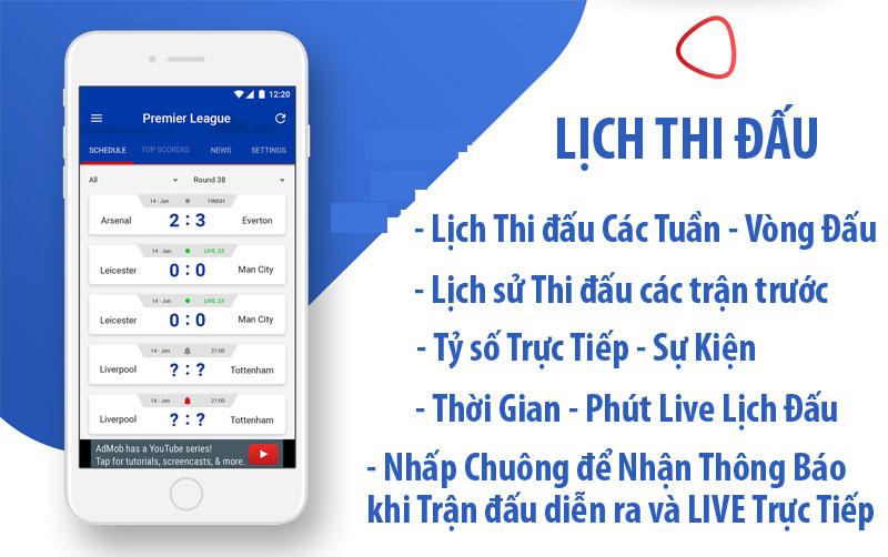 Ứng dụng xem bóng đá trực tiếp, xem tỷ số , tỷ lê cược bóng đá các giải đấutrên thiết bị điện thoại thông minh Smartphone Mobile. Đây là ứng dụng hoàn toàn miễn phí
