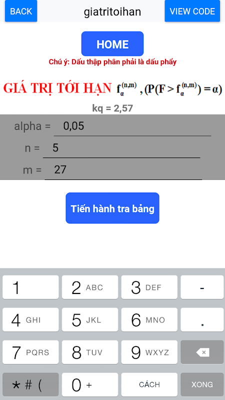 Có thể tra các giá trị tới hạn cần thiết cho phân phối Chuẩn, phân phối Student, phân phối Khi bình phương, phân phối Fisher - Snedecor.