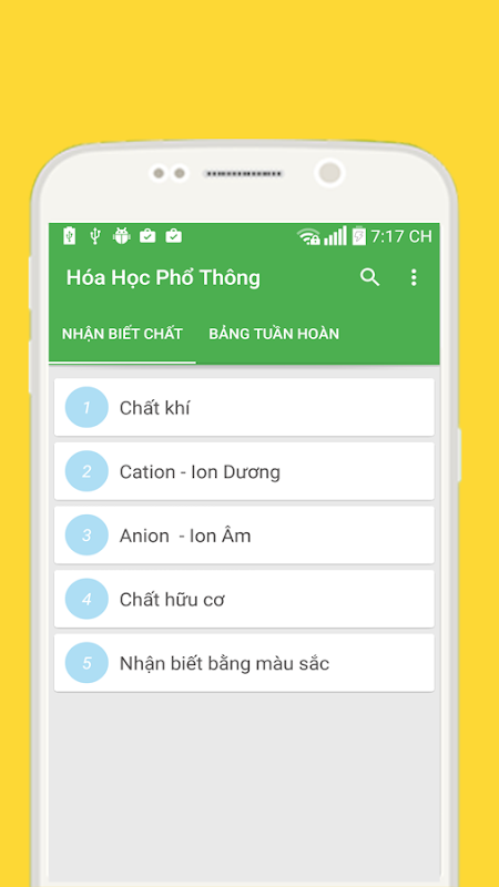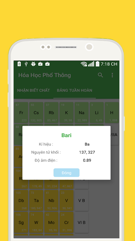 Ứng dụng Bảng Tuần Hoàn và Nhận Biết Chất Hóa Học như một cuốn sách nhớ Hóa Học cho các bạn học sinh .Bao gồm bảng tuần hoàn các chất nguyên tố và cách nhận biết các chất trong hóa học.