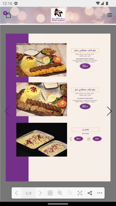 مطعم “بابا كرم” من أشهر المطاعم الرّائدة في مجال تقديم الأطباق الإيرانية الشّهية متخصّص بالمشاوي على أنواعها. كما يوفّر أطعمة متنوعة من أطباق رئيسية مثل جلو كباب شقف بالروب، صينية بابا كرم مشكل وغيرها الكثير بالإضافة إلى خدمة تيك أوي بوكس كميكس باربكيو بوكس، الحساء والسلطات. أطباقنا الشهية مع خبرة طاقمنا الطويلة تنتج أطيب وألذ طعم. يركز مطعم “بابا كرم” على المصداقية والعمل على اقتحام السوق بمستوى عالي من الجودة مما أدى إلى الوصول لمعدل متميز ومرموق في إرضاء العميل والوصول إلى قاعدة عريضة من العملاء الذين يثقون بجودة المنتج والخدمة المقدمة.