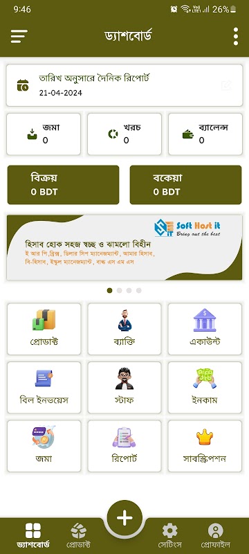 একজন সফল ব্যবসায়ীর জন্য একটি আদর্শ ড্যাশবোর্ড যাহাতে ব্যবসায়ের সাথে সম্পর্কিত প্রধান তথ্য একনজরে দেখা এবং ব্যবসায়ীক লেনদেন সংক্রান্ত ডাটা এন্ট্রি সহজ হয়। একটি সুসজ্জিত ড্যাশবোর্ড যা আপনার ব্যবসার সর্বশেষ তথ্য দিবে, যাতে সঠিক সময়ে সঠিক সিদ্ধান্ত নিয়ে আপনার ব্যবসায়ের উন্নতি ও চুড়ান্ত লক্ষ্যে পৌঁছাতে সাহায্য করবে।