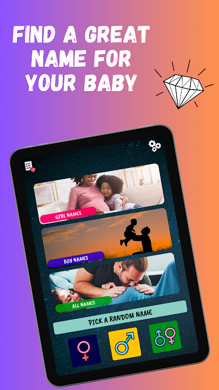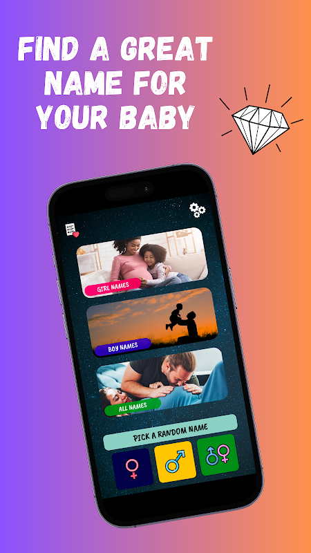 • Random Name Generator: If you're unsure, let the app surprise you! Use the random name generator to get baby name suggestions based on gender and language.